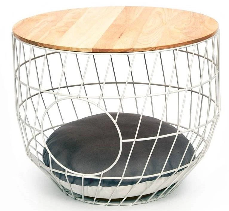 De 51 Degrees North wire Cat Table with cushion is een unieke design kattenmand die je ook kunt gebruiken als moderne bijzettafel.