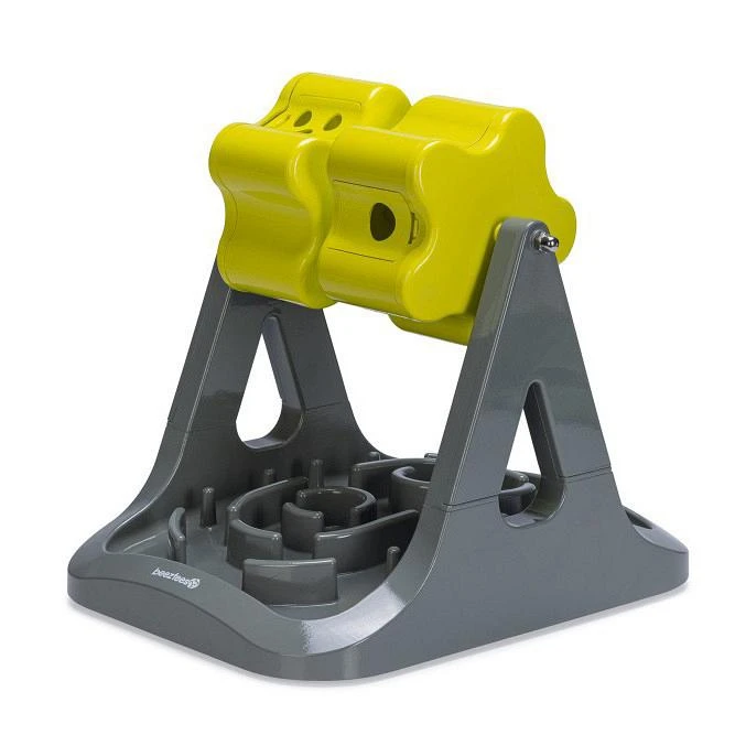 Beeztees Hondenspeelgoed Brain Game Rodar is een te gek denkspel voor de hond. Het trainingsspel is gemaakt van plastic en beschikt over twee rollers waar hondensnoepjes in verstopt kunnen worden. Zodra jouw hond aan deze rollers draait, met zijn of haar poot of snuit, kunnen de snoepjes uit de rollers vallen. Ze worden geleverd met drie verschillende klepjes. De klepjes hebben een, twee of drie gaten, zo kun jij zelf de moeilijkheidsgraad bepalen. Zodra het hondensnoepje uit de snack roller valt, komt dit terecht in het antischrokgedeelte. Ook hier dient jouw hond weer tussen de diverse uitstulpingen op zoek te gaan naar zijn of haar beloning.