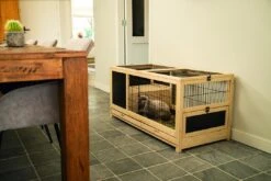 De kooi is voorzien van een lade, waardoor je de kooi eenvoudig schoon kunt maken. De konijnenkooi Jez heeft maar liefst 3 openingen, aan de boven-, de zij- en de voorkant. Hierdoor kan jouw konijn gemakkelijk in de kooi worden geplaatst of eruit worden gehaald.
