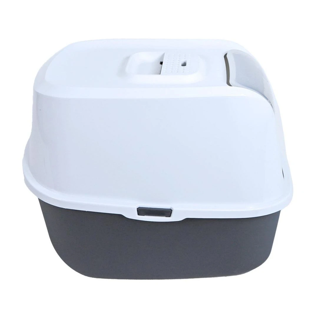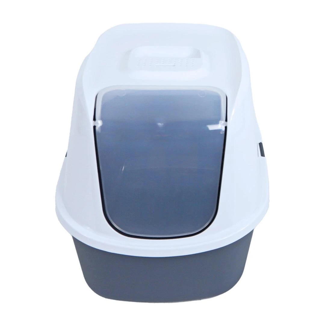 De bak beschikt over een ingebouwd handvat en heeft een halftransparante deur voor extra privacy voor je kat. Het toilet heeft een koolstoffilter.