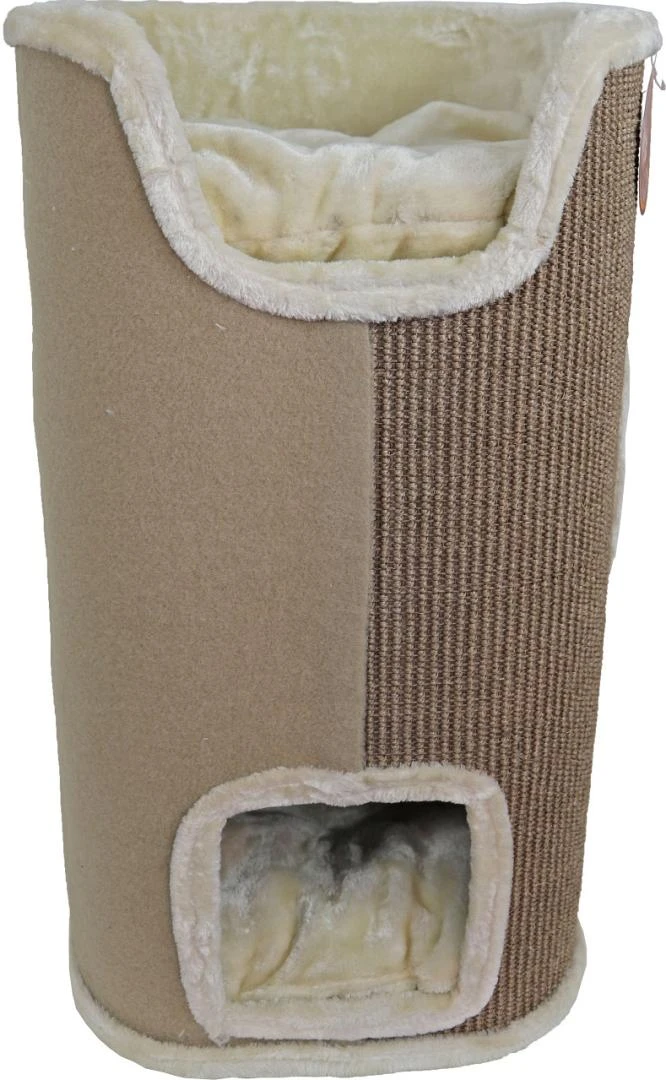 Bij dit krabmeubel zitten drie heerlijke, zachte, pluche kussens voor nog meer slaapplezier voor jouw kat. De buitenzijde is bekleed met een sterke krabmat en er is ook een speelballetje aanwezig.