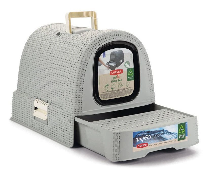 Een prachtig afgewerkte rotan kunststof kattenbak van Curver. Niet alleen een lust voor het oog maar ook zeer gemakkelijk in gebruik.