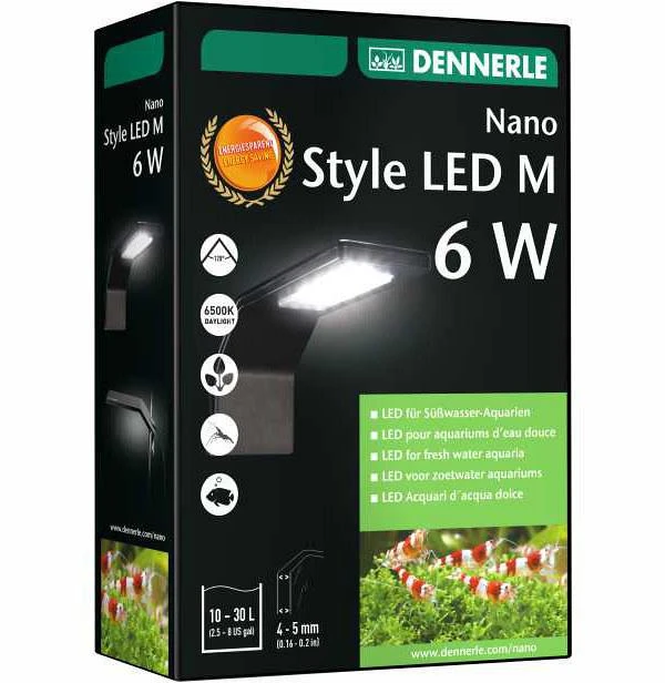 De Dennerle Nano Style Led M – 6 watt is een led-opzetlamp en is geschikt voor Nano zoetwateraquariums (10 – 30 liter). Het heeft een modern design, wat elegant en compact is. Eenvoudig te instaleren en geschikt voor een glasdikte van 3-10 mm /4-5 mm.