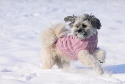 Deze hondentrui van Designed by Lotte is naast het functionele gedeelte ook nog eens een waar mode item. De trui heeft een mooi gebreid patroon en een hoog opstaande kraag, welke je kan oprollen naar het ideale comfort voor jouw hond. In de rugzijde van deze trui zit een afgewerkt gaatje, zo kan je gemakkelijk een looplijn bevestigen aan de halsband of het tuigje.