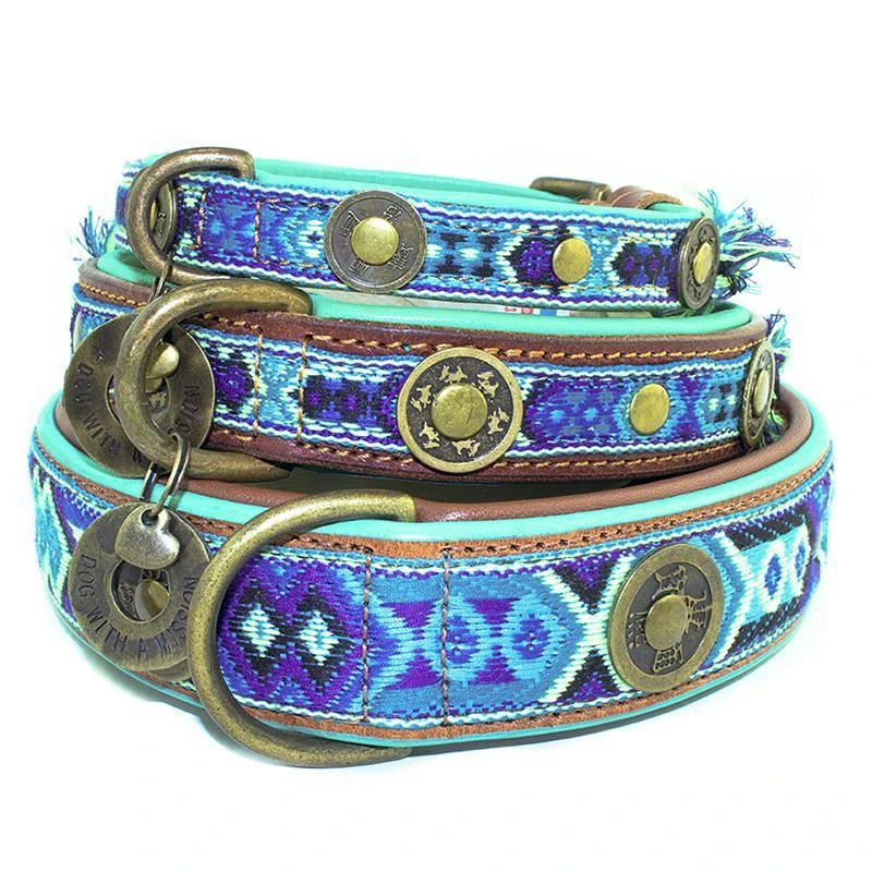 Dog with a Mission Halsband Boho Juan is handgemaakt, geborduurd en gestikt. Deze geweldige halsband is kleurrijk en opvallend.