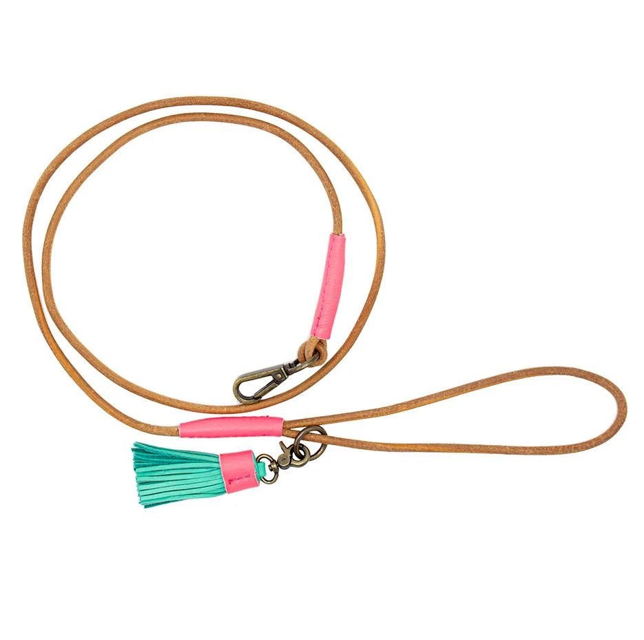 Compleet met Dog with a Mission style details is deze riem uitgerust met het authentieke turquoise kwastje en voorzien van roze leren details en heeft een lengte van 135 cm.