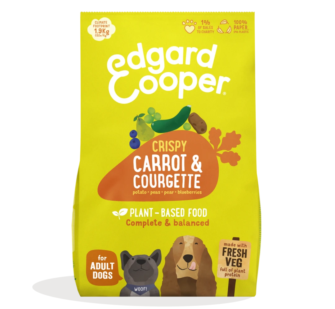Dit heerlijke, plantaardige recept met wortel en courgette van Edgard & Cooper hondenvoer Adult Plantaardig Wortel geeft je hond alles wat hij of zij nodig heeft. Rijk aan perfect gebalanceerde eiwitten bevat het alle 10 essentiële aminozuren, afkomstig uit aardappelen, rijst en erwtjes. Dit recept is hypoallergeen en zit boordevol verse groenten en een voedzame mix van fruit, kruiden en peulvruchten. Wij koken onze recepten op een lage temperatuur om al het goede en de smaak te bewaren, voor een gelukkige & gezonde hond!