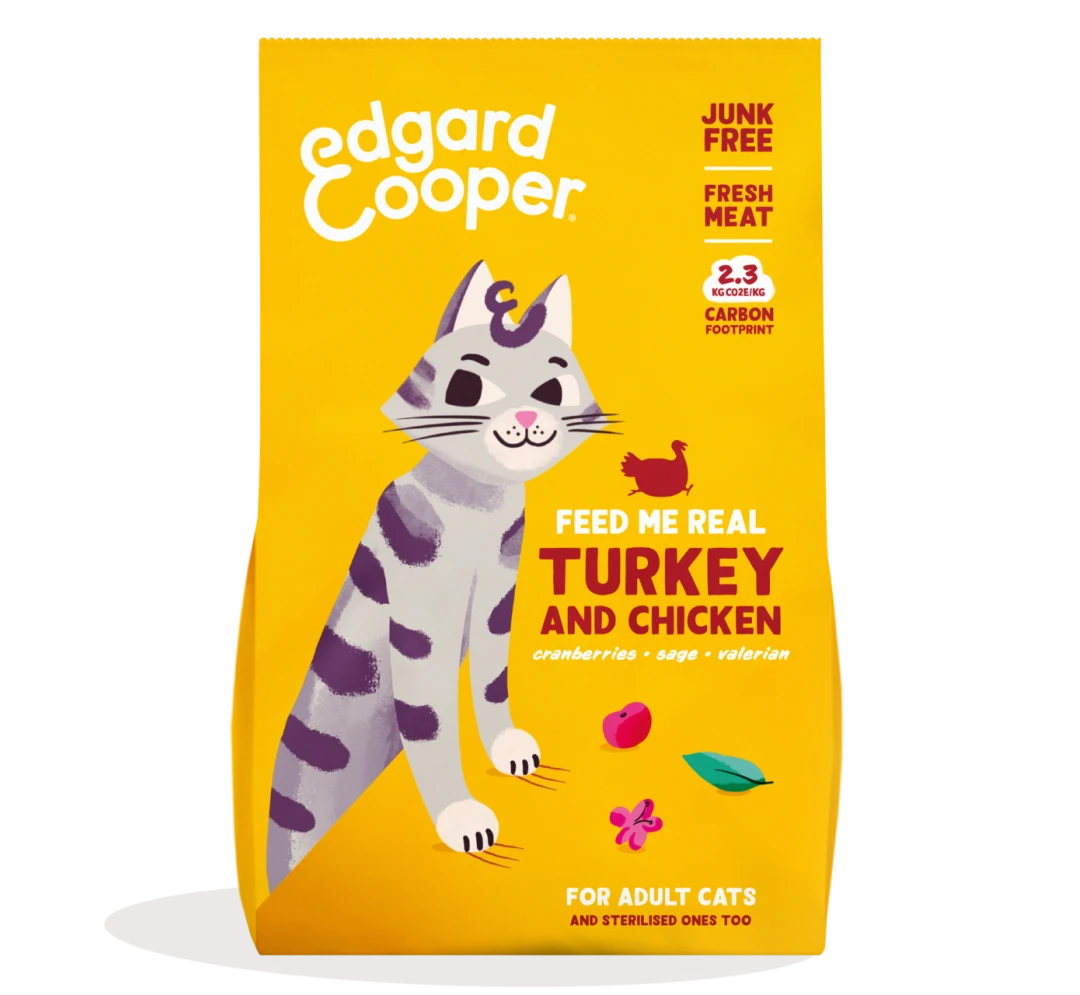 Edgard & Cooper kattenvoer Adult Kalkoen en Kip is een volledige voeding van graanvrije, krokante brokjes met verse vrije-uitloopkip en vrije-uitloopkalkoen. Echt eten en geen junkfood: ideaal voor volwassen katten, ook als ze gesteriliseerd zijn. Ze zitten boordevol vers vlees zonder kunstmatige of tot poeder verpulverde toevoegingen en zonder toegevoegde suiker.