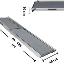 De Happy Ride Telescoping honden loopplank, gemaakt van aluminium met antislipcoating, is multifunctioneel en kan op verschillende lengtes uitschuifbaar gebruikt worden. Hoe langer je de plank maakt, des te minder steil zal het zijn voor jouw hond om omhoog te komen. Aan beide uiteinden zitten rubberen voetjes die er voor zorgen dat de plank niet weg zal glijden.