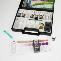 • Inhoud: 1 testkoffer voor aquariums incl. 7 reagentia, 3 glazen cuvetten, spuit, doseerlepel, comparatorblok, kunststof cuvet, kleurenkaarten, protocolbladen en handleiding