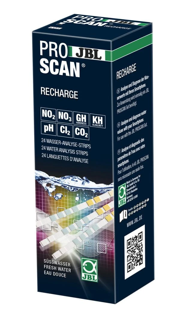 JBL ProScan Recharge bevat 24 strips voor het analyseren van jouw aquariumwater met de JBL ProScan wateranalyse set.