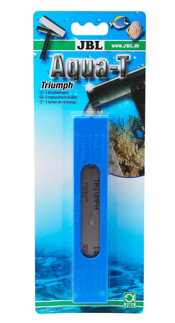 De JBL ruitenreiniger Aqua-T Triumph maakt een moeiteloze verwijdering van hardnekkige aanslag op de aquariumruit mogelijk. Door de geringe afstand van het lemmet tot de houder kunnen de siliconen naden van het aquarium niet worden beschadigd. De beschermende kap verhindert verwonding wanneer je hem niet gebruikt en dient tegelijkertijd als rubberen schraper voor de buitenzijde van de aquariumruiten.