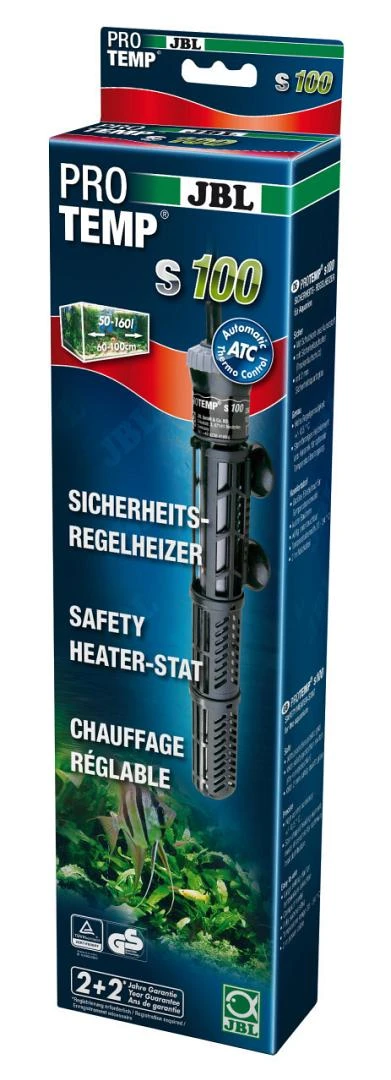 De JBL ProTemp S 100 is een regelbare verwarming van 100 watt met een beschermende korf voor aquaria.