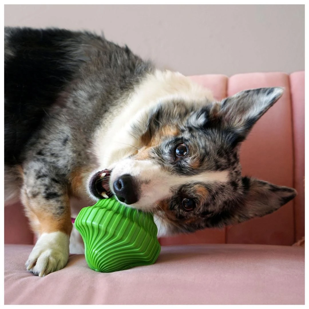 De tol is voorzien van een pieper en dankzij zijn oppervlak met structuur is hij makkelijk vast te pakken door honden.
