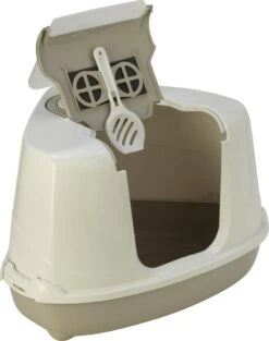 De naar boven openklapbare deur zal het dagelijkse schoonmaken van de kattenbak vergemakkelijken. De kattenbak is voorzien van een makkelijk handvat en een doorschijnende deur voor extra privacy.