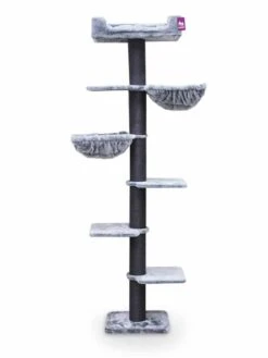 • Zeven slaap- en klimplekken: vier royale plateaus, twee fijne hangmatten en een super-de-luxe loungemand helemaal bovenin