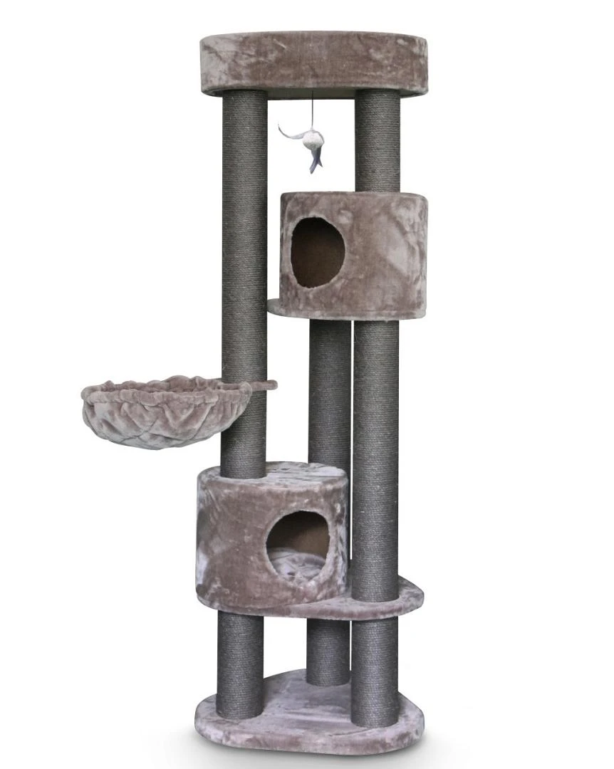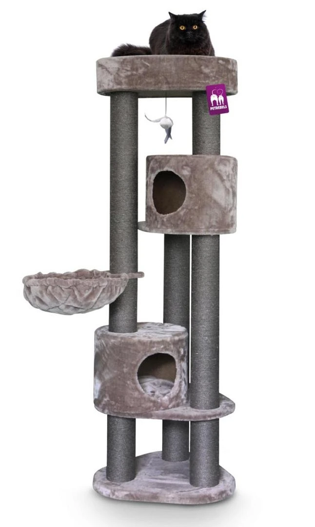 De Petrebels Krabmeubel Charlotte 180 wordt speciaal gemaakt voor grote katten en kattenrassen. Die hebben namelijk behoefte aan sterke en hoge krabstammen om aan te krabben en zich uit te strekken. Want daar worden ze blij van. Maar er is meer! Een superzachte hangmat, twee fijne slaapruimtes en een grote zachte divan bovenop. Plek zat dus voor meerdere katten en door de extra dikke bodemplaat is deze topper superstabiel. Het krabmeubel is extra hoog maar neemt weinig ruimte in beslag.