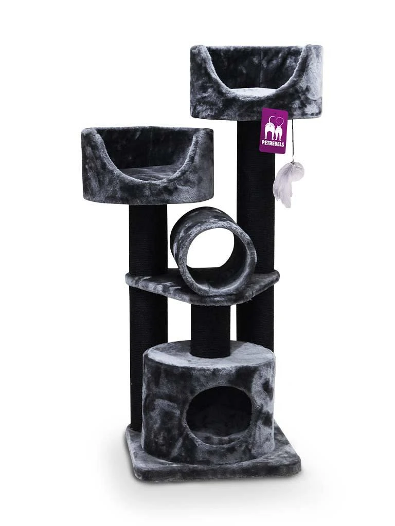 De Petrebels krabmeubel Kings & Queens Victoria 125 is compact, lief en sterk. Met zijn 6 mm dik, natuurlijk sisal en zijn 12 cm dikke stammen is de Victoria 125 uitermate geschikt voor kleinere woningen. Twee luxe divans met uitneembaar kussen bovenin zorgen er voor dat je kat op de uitkijk kan gaan zitten.