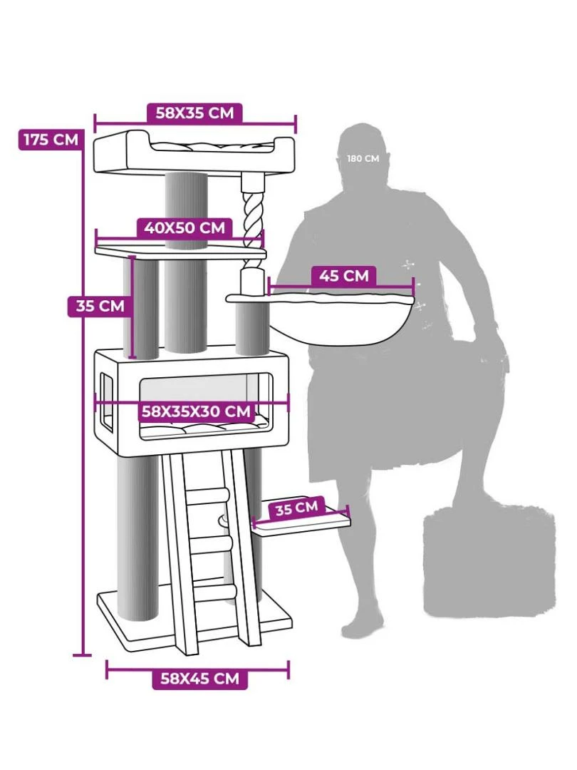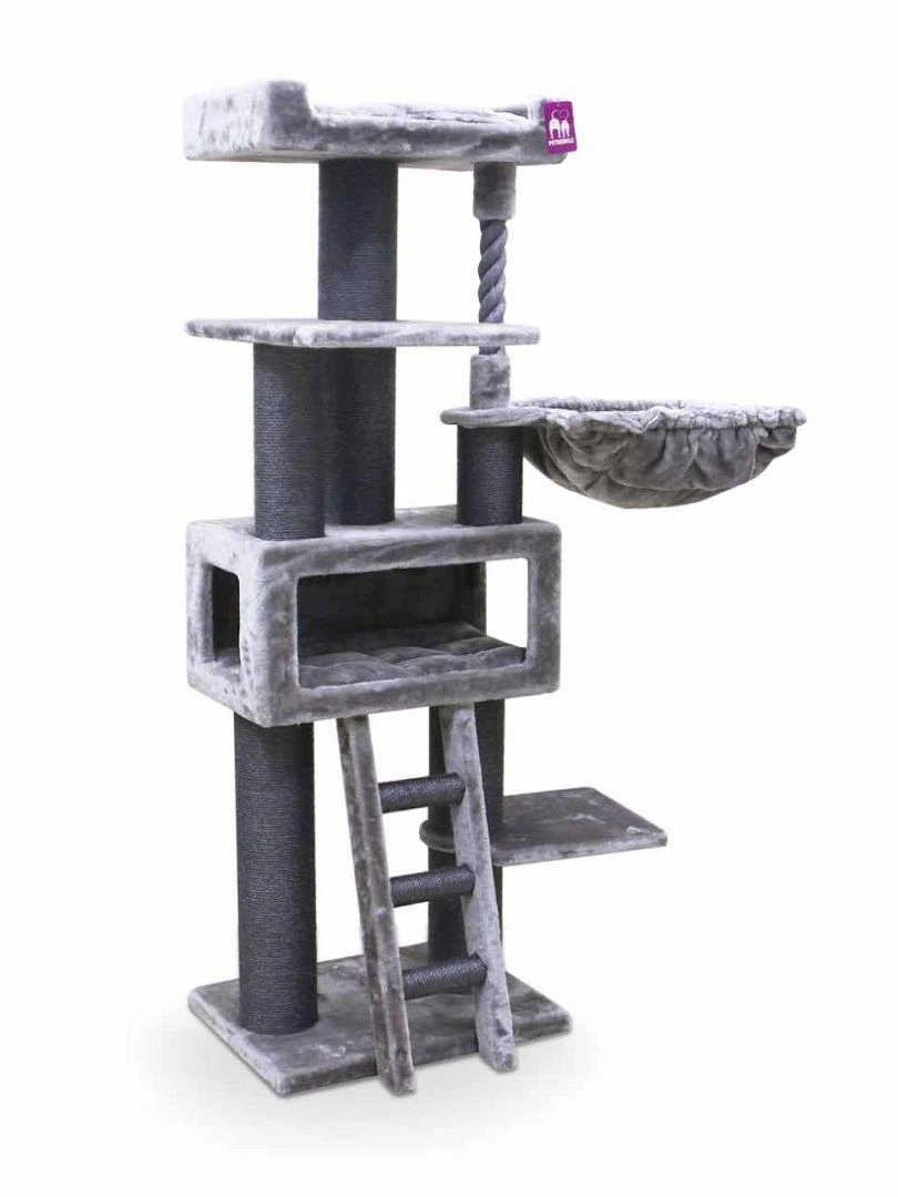 Het Petrebels krabmeubel Lucky Bastards Parklane 175 is een meer-dan-compleet, extra hoog en robuust krabmeubel uit de Lucky Bastards collectie. Je kat kan krabben, klimmen, spelen en natuurlijk slapen in het luxe slaaphuisje, in de extra grote hangmat of helemaal boven, in de extra grote loungemand met fluweelzacht kussen.