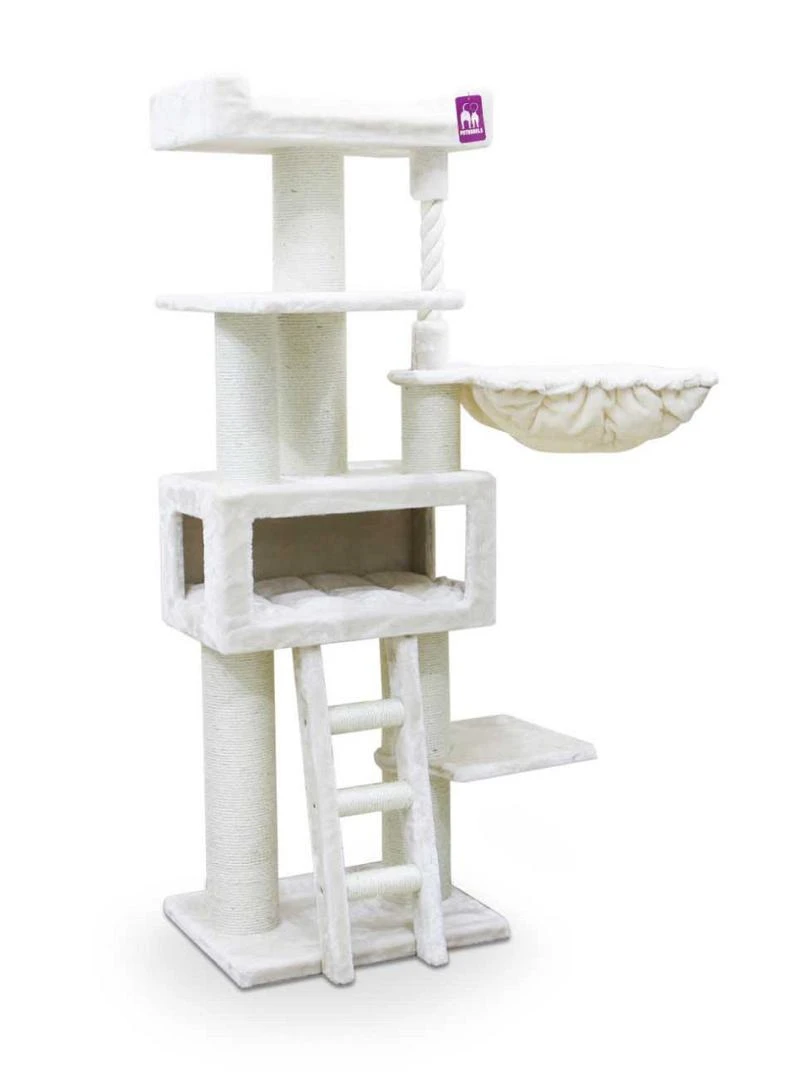 Het Petrebels krabmeubel Lucky Bastards Parklane 175 is een meer-dan-compleet, extra hoog en robuust krabmeubel uit de Lucky Bastards collectie. Je kat kan krabben, klimmen, spelen en natuurlijk slapen in het luxe slaaphuisje, in de extra grote hangmat of helemaal boven, in de extra grote loungemand met fluweelzacht kussen.