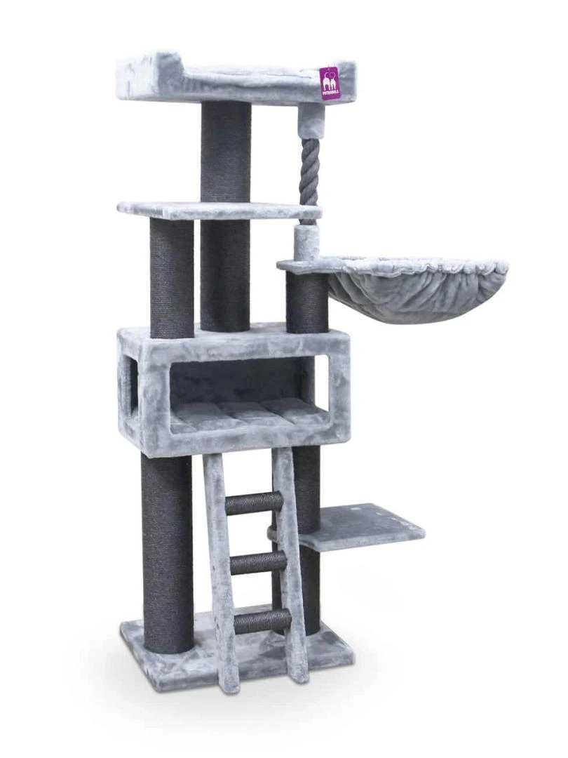 Een stabiel, extra hoog en robuust krabmeubel met meerdere ligplekken van fluweelzacht pluche. Ook geschikt voor grote, zware, oudere en minder mobiele katten. Afm. 58 x 45 x 175 cm.