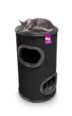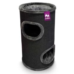 De ingangen zijn liefdevol afgewerkt met pluche. Door de 4 cm dikke bodemplaat is de krabton sterk en stabiel. De bovenste ligplaats is eenvoudig omgebouwd tot een comfortabel bed met een zachte vulling. De Dome 80 heeft 2 ingangen en 2 etages binnenin. De etages aan de binnenzijde zijn met elkaar verbonden zodat de kat gemakkelijk bovenin kan komen. De Dome 80 is geschikt voor alle soorten katten en is een ware kampioen!