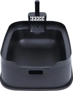 De flap en de onderbak zijn voorzien van een kleine magneet, waardoor de flap altijd netjes terugvalt op zijn plaats. Dit zorgt ervoor dat er ook geen onaangename geurtjes kunnen ontsnappen uit het toilet. De kattenbak is voorzien van een geurfilter en een kattenbakschep, die je kan opbergen aan de binnenkant van de bak.
