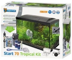 De SuperFish Start 70 Tropical zwart is een complete starterkit met energiezuinige ledverlichting, binnenfilter en handige accessoires om de aquariumhobby te starten.