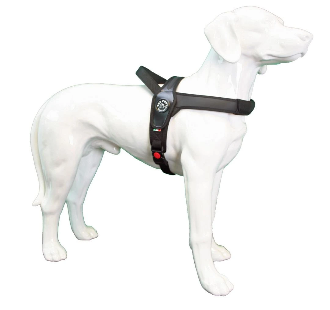 De Primo serie van Tre Ponti is ontwikkeld als ‘allround’ tuig en geschikt voor honden van 10 tot en met 60 kg. Het tuig gaat over het hoofd van de hond en wordt onderin ingesteld en vastgeklikt met een slot sluiting.
