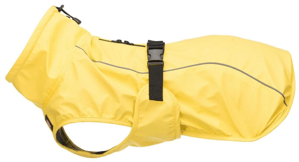 De TRIXIE regenjas Vimy is een opvallende gele regenjas voor honden waarmee je je hond ook bij regen droog houdt.