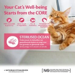 Wellness CORE Sterilised Zalm is een complete en evenwichtige natuurlijke kattenvoeding voor gesteriliseerde en gecastreerde katten met verse vis als eerste ingrediënt. Vers vlees of vis is altijd het eerste ingedient in onze droge recepturen voor een heerlijke smaak waar elke carnivoor dol op is.